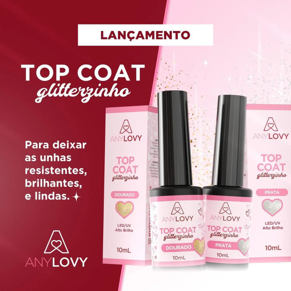 O Top Coat ANYLOVY é um finalizador sem goma, que age como selante proporcionando maior durabilidade ao alongamento e um alto brilho.